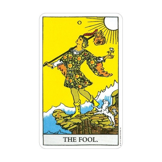 “The Fool arcanum represents a young enthusiastic man wearing luxury clothes, standing close to the edge of a cliff, with a dog that can represent our animal nature. He does not seem bound to the limits of our terrestrial world, and his eyes are looking up to the divine and celestial planes, showing his aspiration to rise up spiritually even when you sometimes need to jump into the unknown. He is ready for it, because he is supported by his conviction that Divine Providence will help him to improve his human condition…The sun that shines behind him is meant to illuminate the path that should be taken, and protect him as he works towards his goals…Others see the Fool as the ultimate symbol of supreme initiation. With this interpretation he is the true Initiate, reaching for Ultimate knowledge…is about to undergo deep spiritual changes, or is standing at the crossroads of something important in their life…The Fool will bring them into a world of spirituality, where they may find Knowledge out of most people’s reach. With this interpretation, the Fool symbolizes a need for freedom and independence. It indicates a positive evolution on a path of wisdom.”